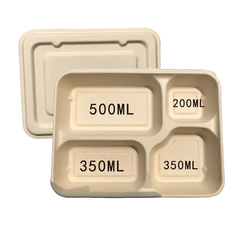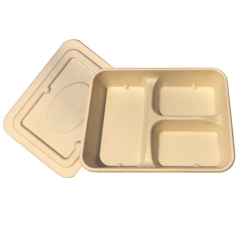 Compartimento de pulpa de bambú biodegradable de tamaño personalizado Tapa de caja Bento de papel blanco natural Diseño estampado CMYK/Pantone Color Food