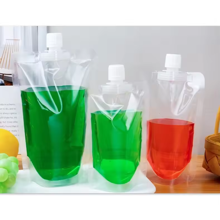 PEC NENHUM IMPOSTO Umidade-prova LDPE transparente bebida saco tela impressão vazio embalagens plásticas sacos suco stand up pouch